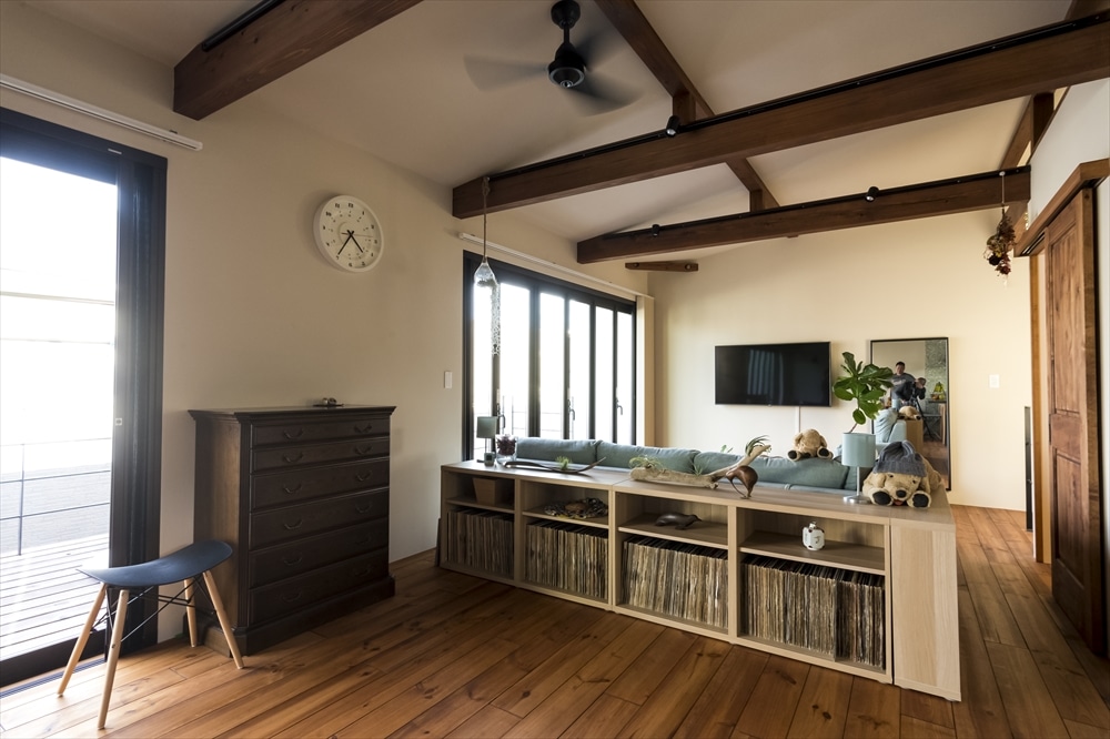LDKです。テラスとの一体感があり、広く明るく開放的だからです。見えている天井の梁は、妻がこうしたいとお願いしたものなんですが、私自身も落ち着きますね。