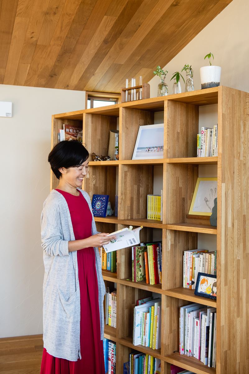 この子たちが、室内からそのまま走り出していけるような空間があったらいいなって。それから目の前の桜が見えるようにしたいということ、そしてリビングに本棚がほしいということも伝えました。