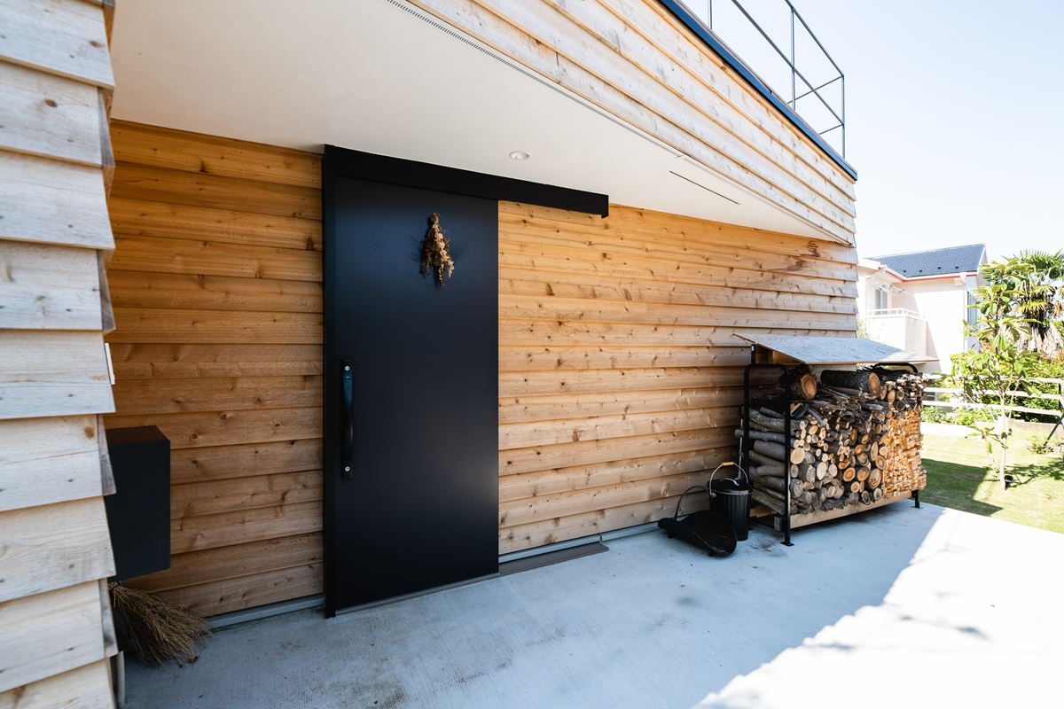 もともと木が好きだというM様。外壁も、ログハウスを思わせる木材を生かしたデザインに。