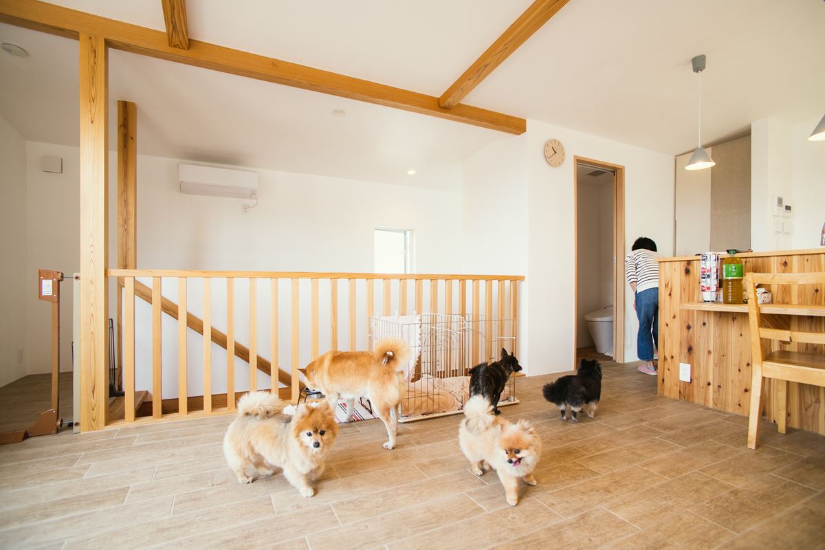 ワンちゃん達が暮らしやすく、お二人もお世話がしやすいようにというご要望から、広々と過ごせる空間、2階への移動もスムーズにという具体的な内容を伺いながら、詰めていきました。