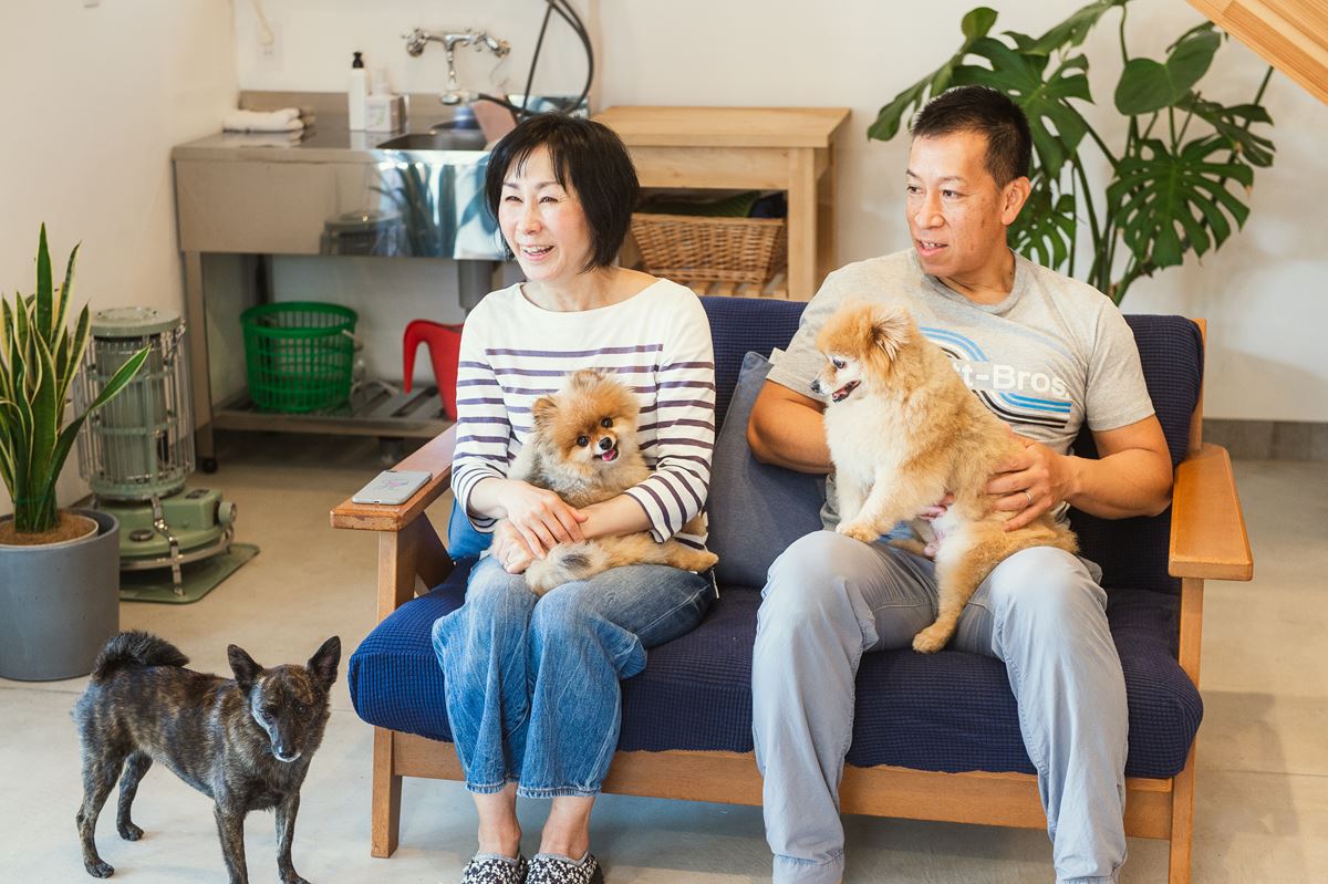 保護犬の里親をしているU様ご夫婦。もともと住んでいた自宅を建て替えるにあたり、お二人が重視したのは6匹の愛犬がストレスなく暮らせる家であること。スロープや土間、各階ワンフロアなど、U様ならではのワンちゃんファーストな家作りについて伺いました。