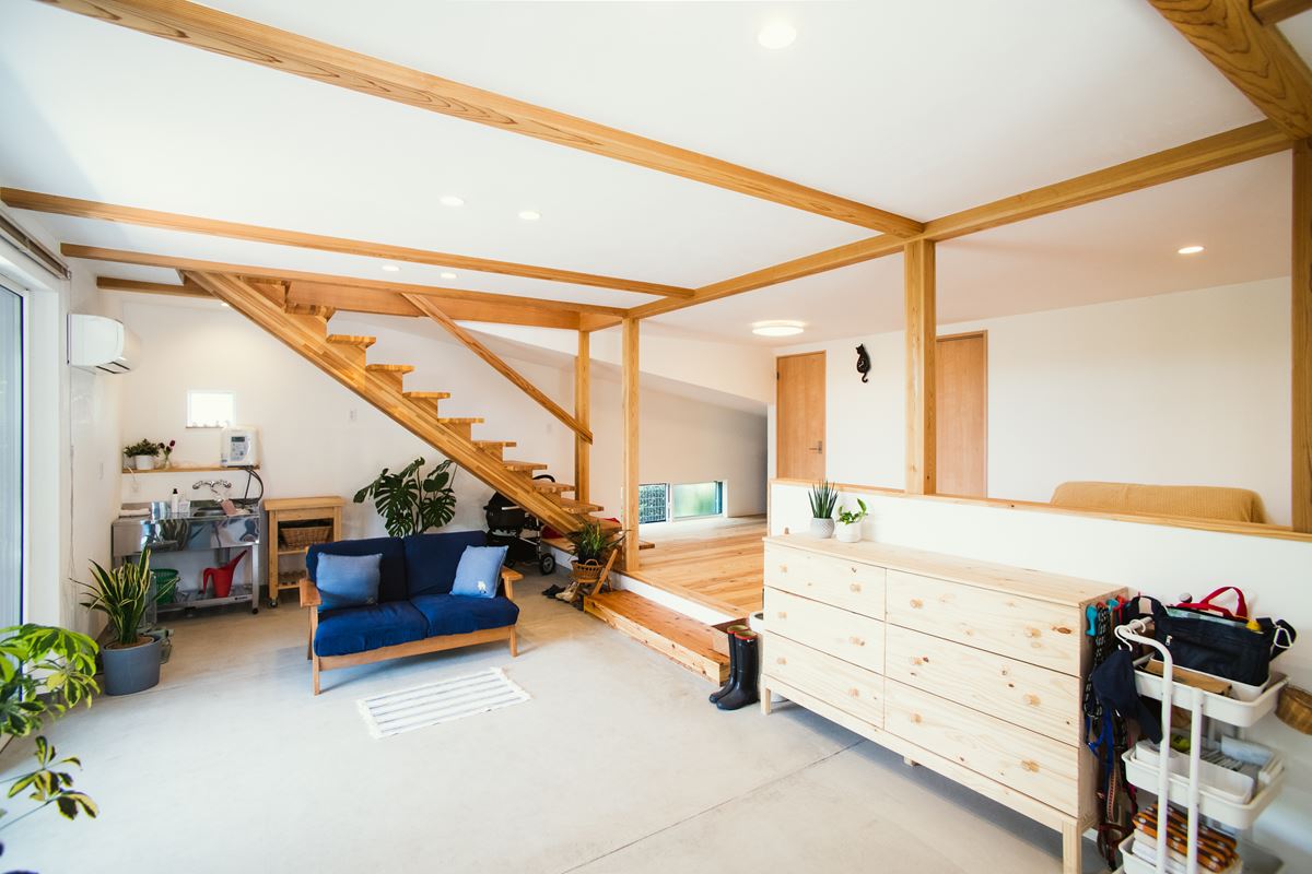 妻はやっぱりスロープで、僕は1階の土間ですね。最初から作りたいと思っていたのですが、せっかくならば思い切ってやっちゃおうと、昔の日本家屋の土間のように大胆な作りにしてもらいました。