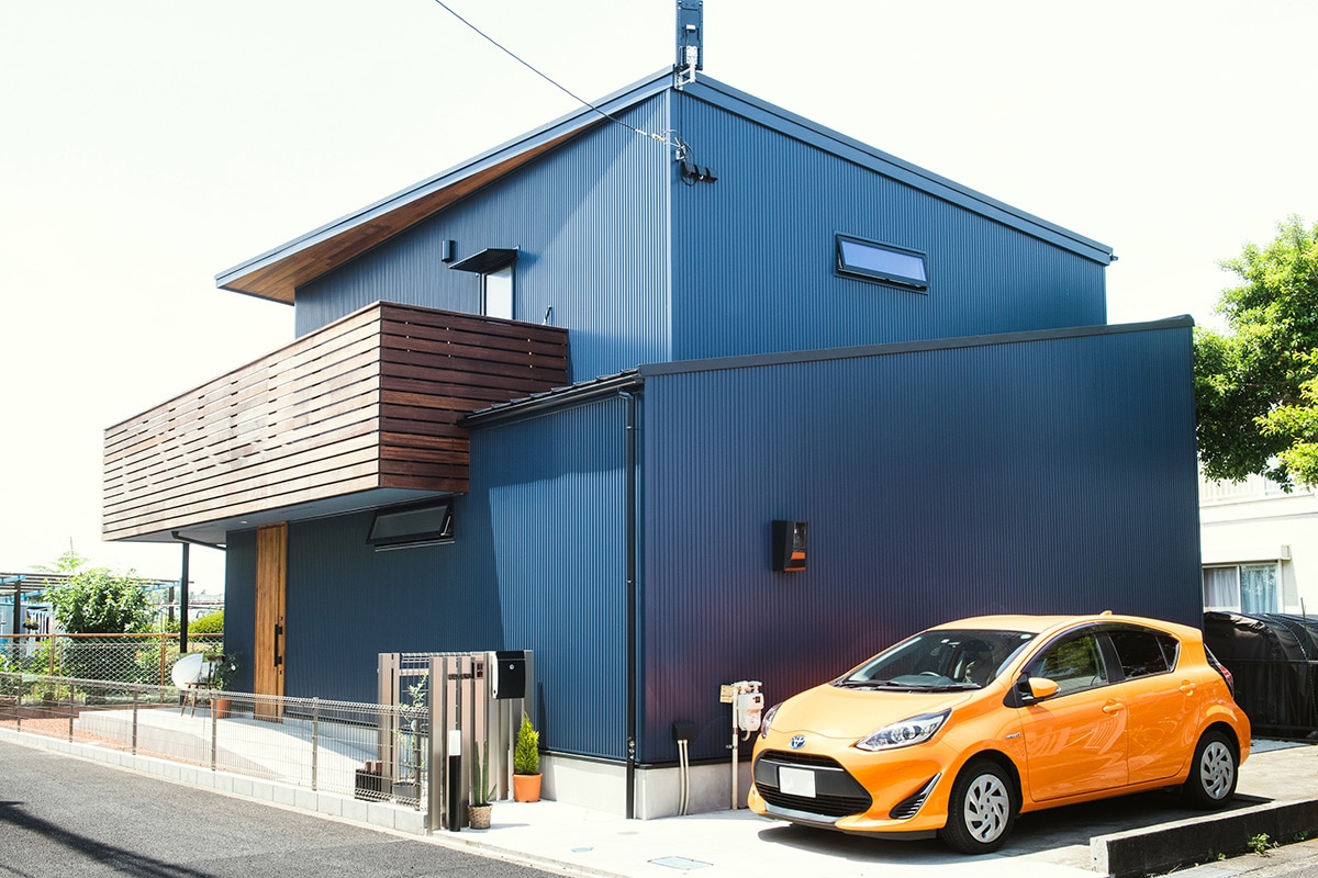 SNSで見かけて憧れていたガルバリウム鋼板の濃紺にしてもらったのですが、買い物に出かけても帰ってくるたびに毎回「あぁ、やっぱりかっこいいな」と思うんです。建ててからこんなはずじゃなかった…と言っている方の話も目にしますが、私たちの場合は本当に後悔ポイントがゼロ。