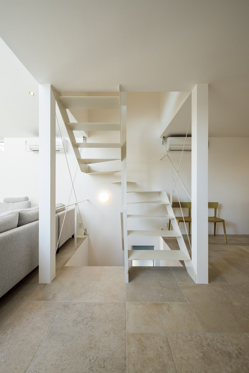 2階の床はタイル張りでリビングのみ床暖房を採用しています。夏はひんやりして本当に気持ちいいですね。