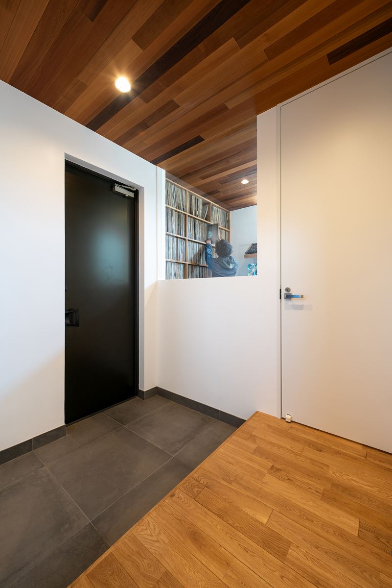 音楽スタジオも、家族が集まるリビングに隣接させてガラス張りにすることで、それぞれの好きなことを一緒に楽しめる環境になりました。