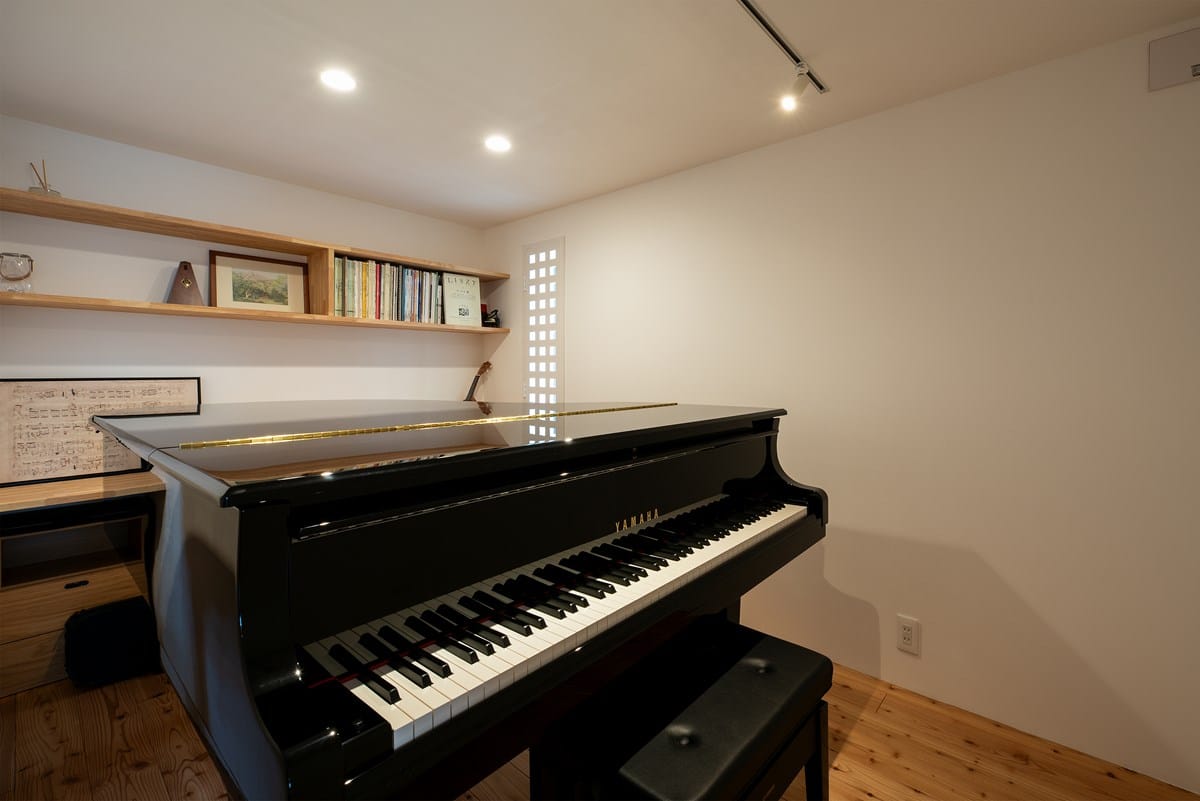 性能面でのこだわりは、小屋裏と床下に設置したエアコン2台のみで全館の空調をまかなえる断熱・気密性です。 冬でも無垢の床がほんのりと温かく、夏は風が直接当たらずひんやりとした空気に包まれます。 エアコンがすべて目隠しされているところもすっきりしていて気に入っています。