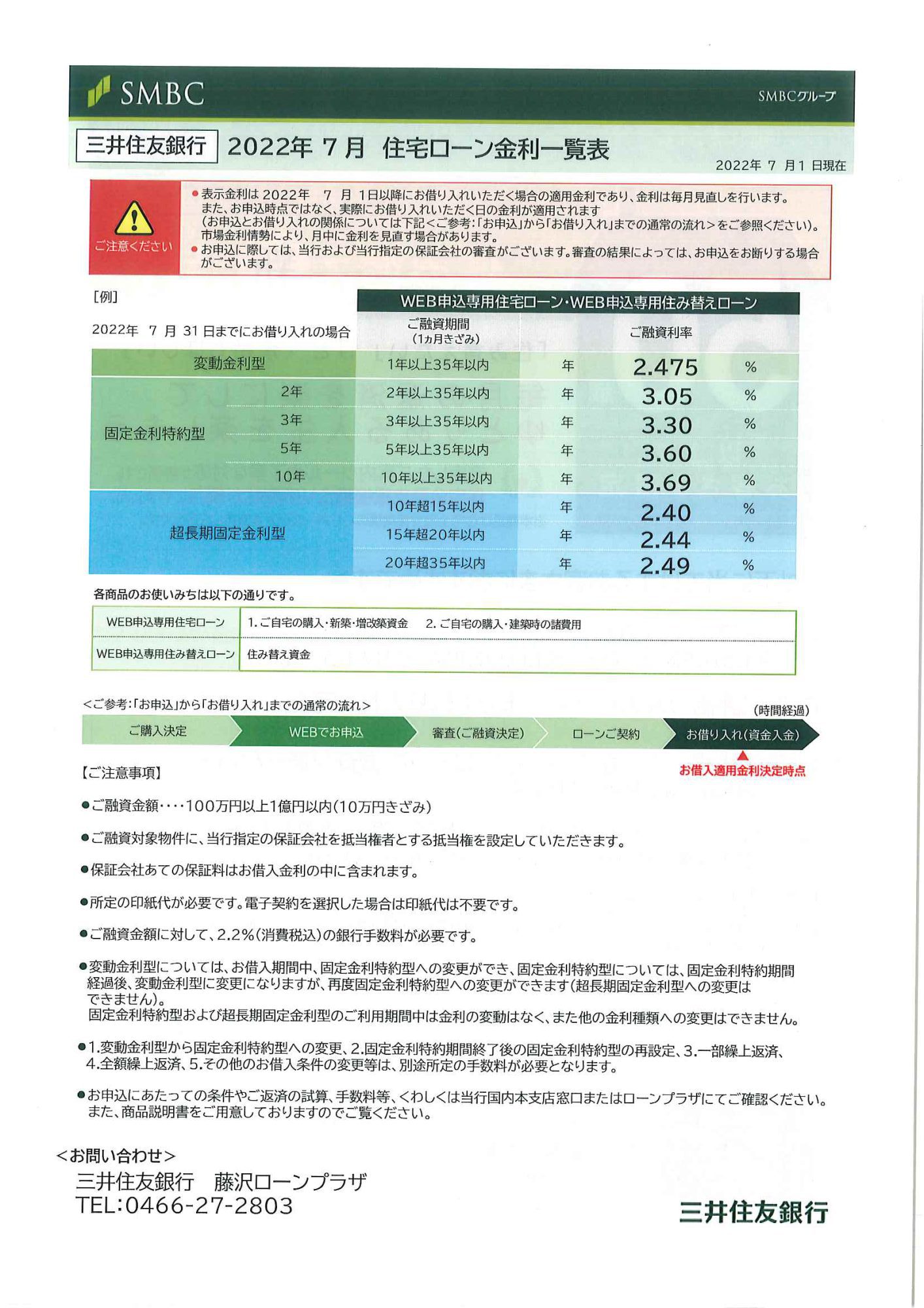 <令和7年1月の三井住友銀行住宅ローン金利表>