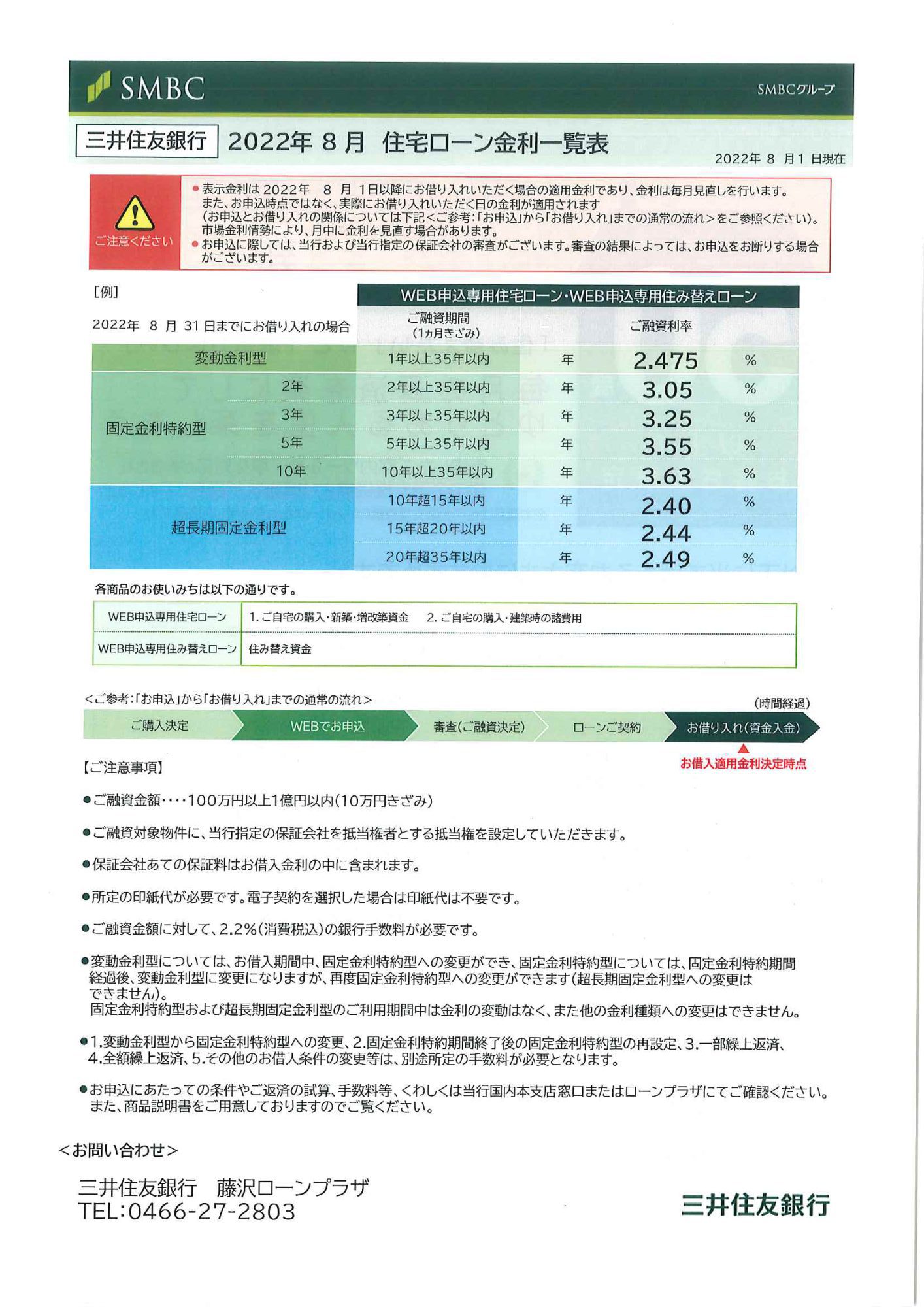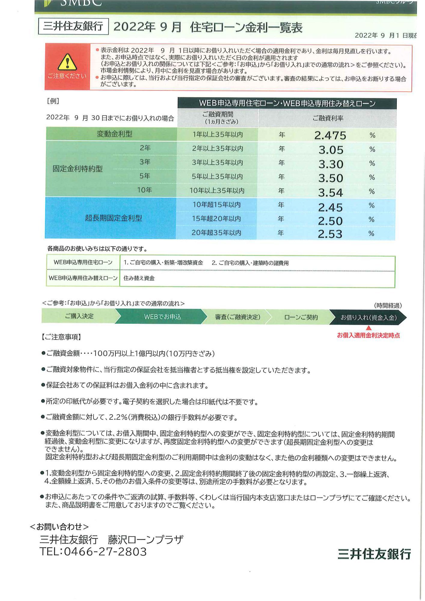 <令和6年9月の三井住友銀行住宅ローン金利表>