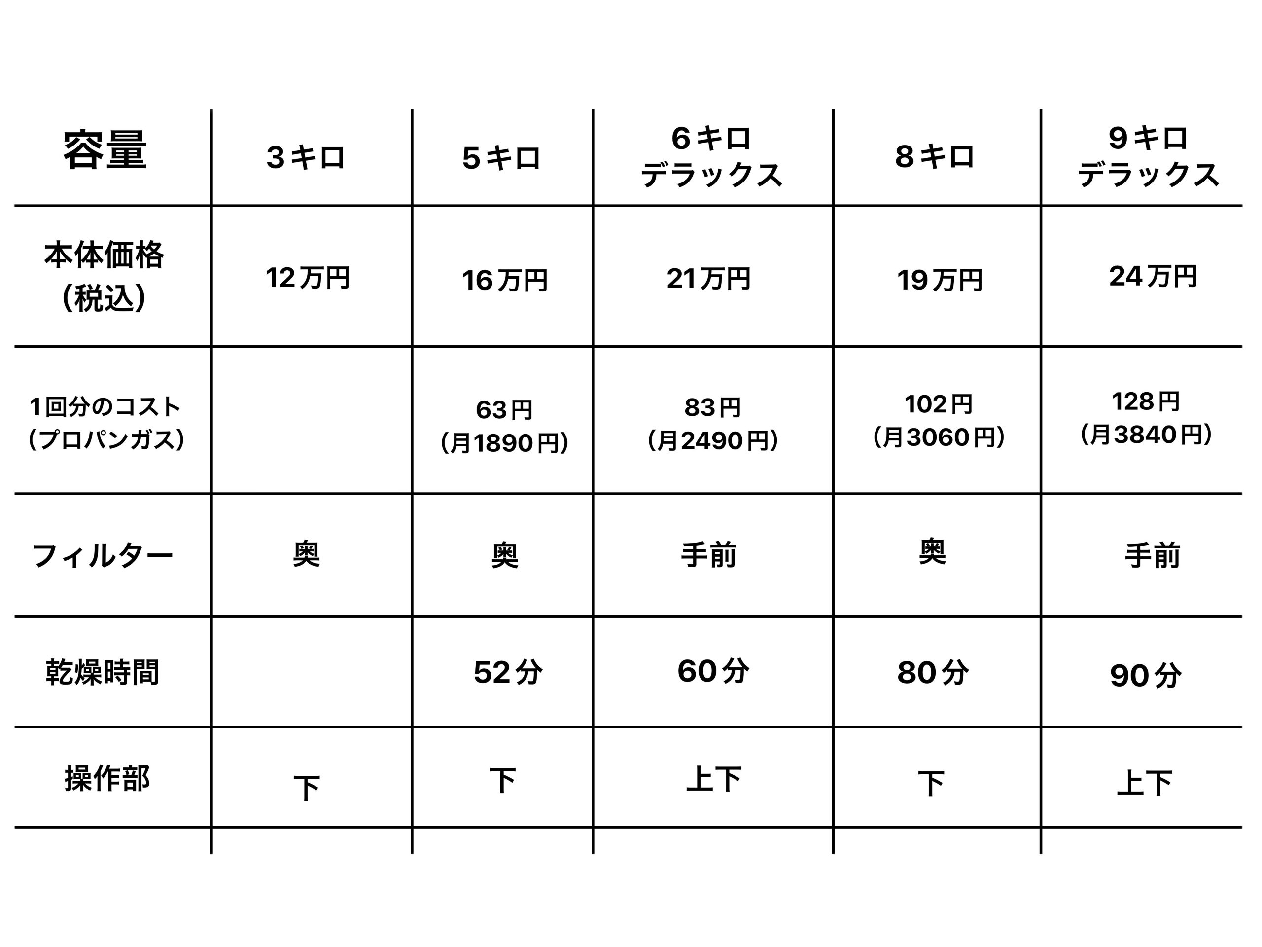 機能の比較は後ほどご紹介しますが…実際どれが人気なの?というと、8キロと9キロのデラックスです!