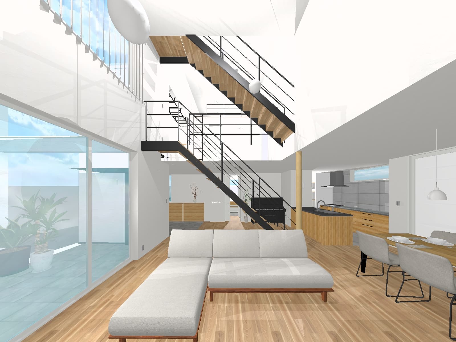 大迫力の2段の鉄骨階段と吹き抜け空間・子供たちと遊べる中庭空間・遊び心満点のトレーニングスペースなど・・・