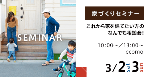 家づくりセミナーを3月2日(土)、3日(日)に開催します!