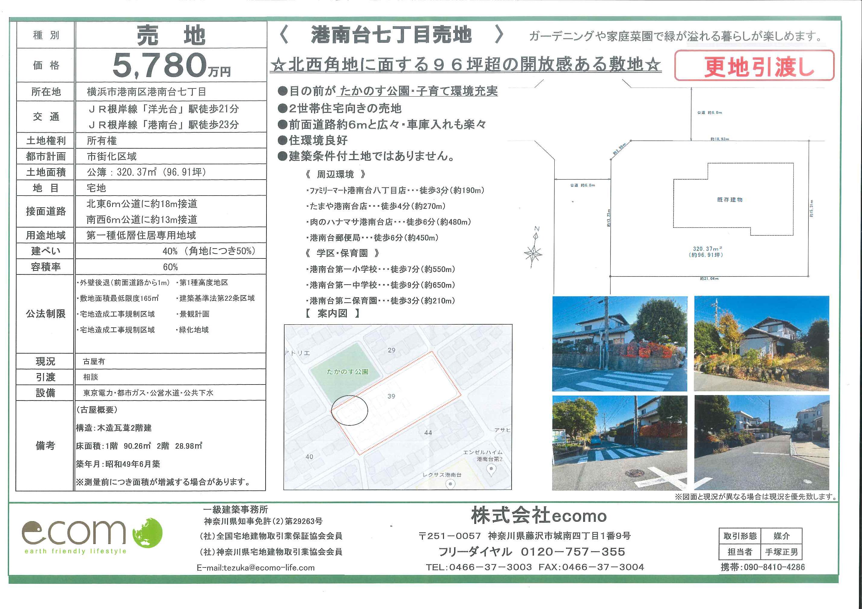 ecomo不動産の手塚です。港南台七丁目土地の申込が入りました。現在、確定測量を進めておりまして、隣地所有者の立会が完了したら契約を進めて参ります。売主様、買主様ご契約まで宜しくお願い致します。どんな建物が建つのか楽しみに待ちたいと思います。
