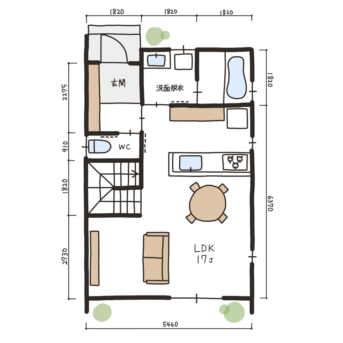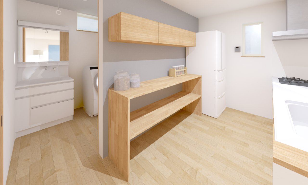 帰ってきて洗面・キッチンにすぐ向かえるのがポイントです。