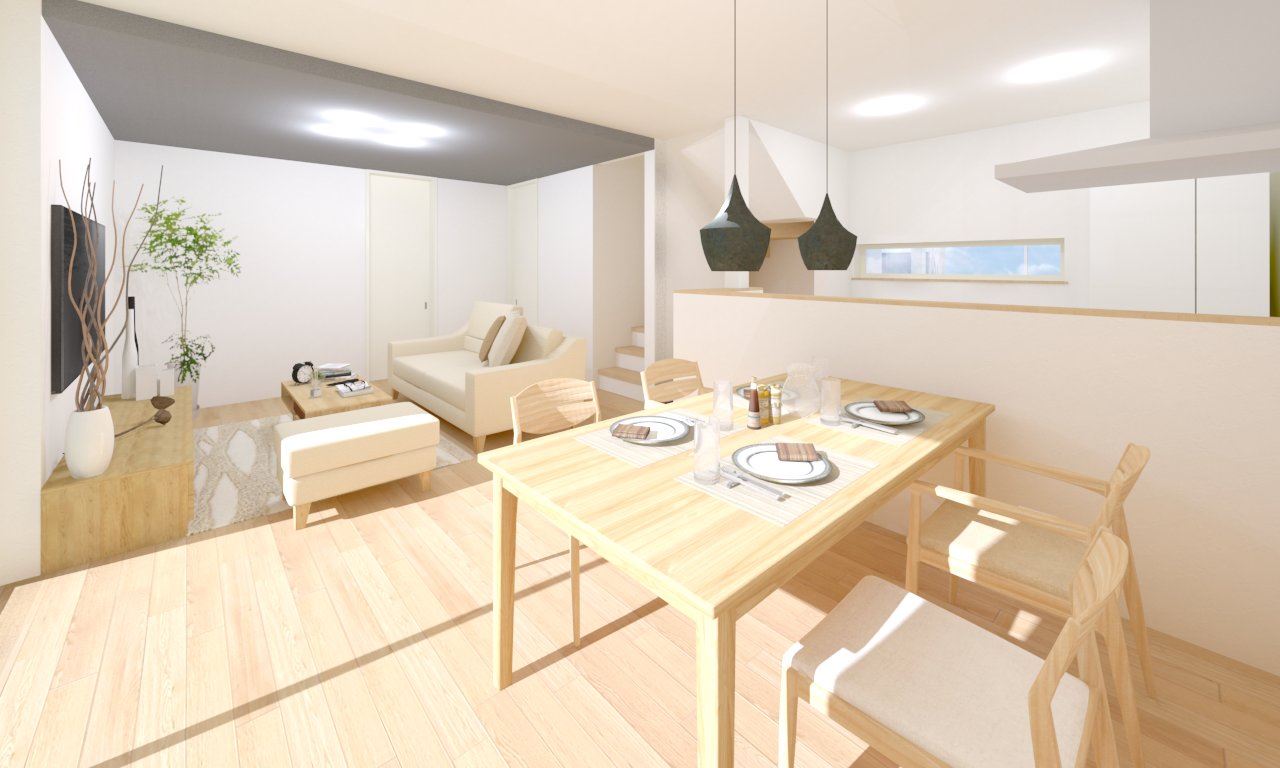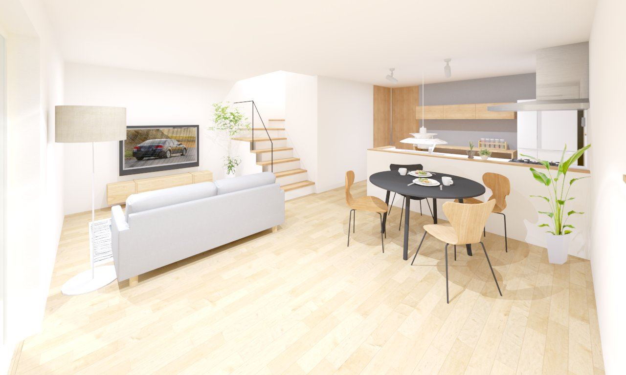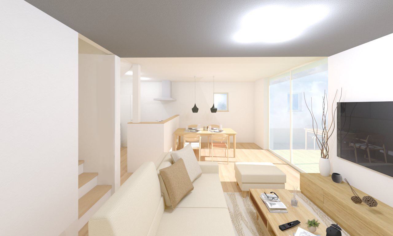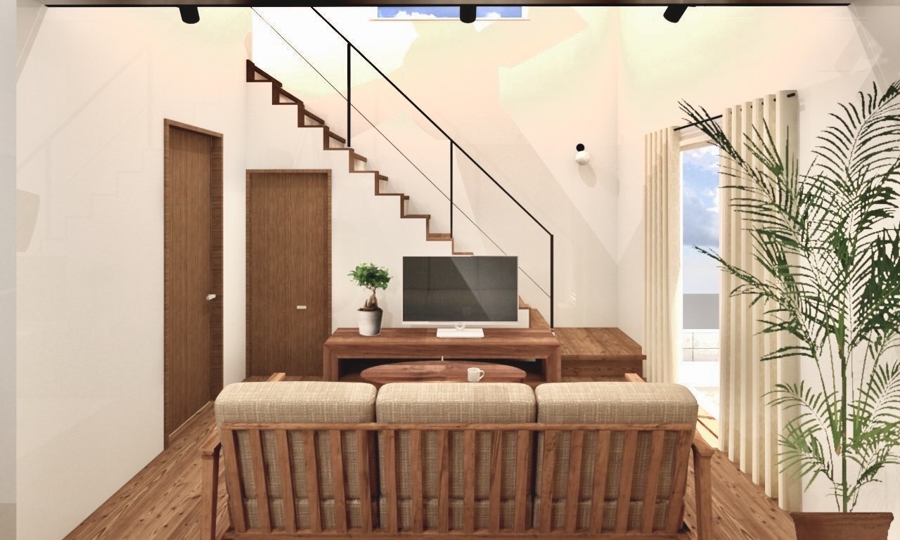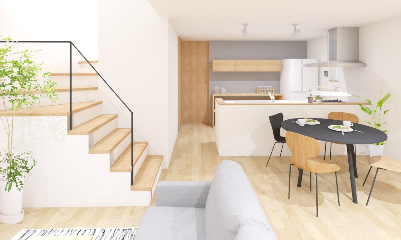 限られた土地でも広々17帖のLDKとオープン階段で大空間を実現しました。