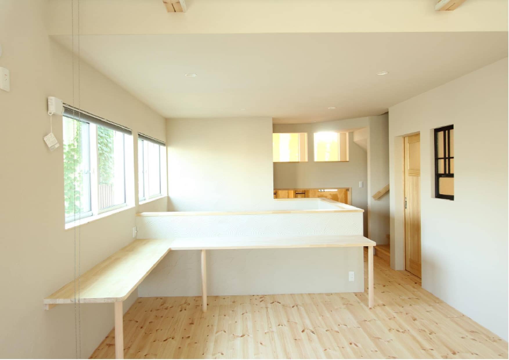 リビングから見渡すと子供部屋が見える開口があるところ。遊び心があって良い感じなので。