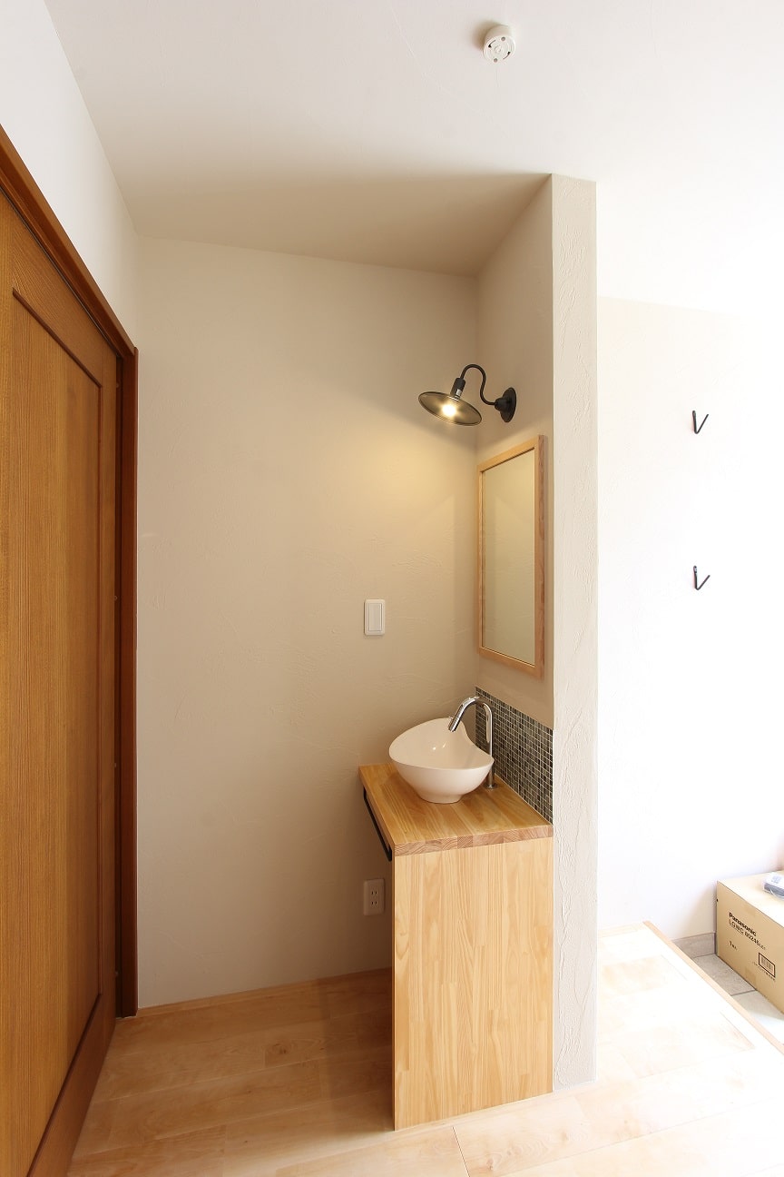 造作洗面台…ボールの形とタイル・照明のサイズ感がちょうど良く、