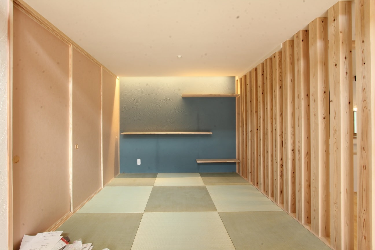 ☆お気に入りの理由:畳スペース…壁の色とパターンが間接照明できれいにでているから