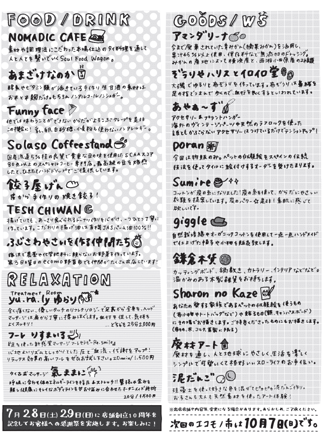 7月のエコモノ市は たくさんの出店者さんで にぎわいます!!