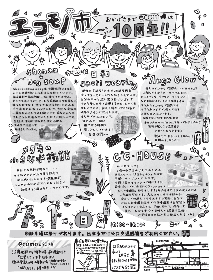 ※今年から3ヶ月に一度になりましたエコモノ市。次回は10月7日(日)になります。