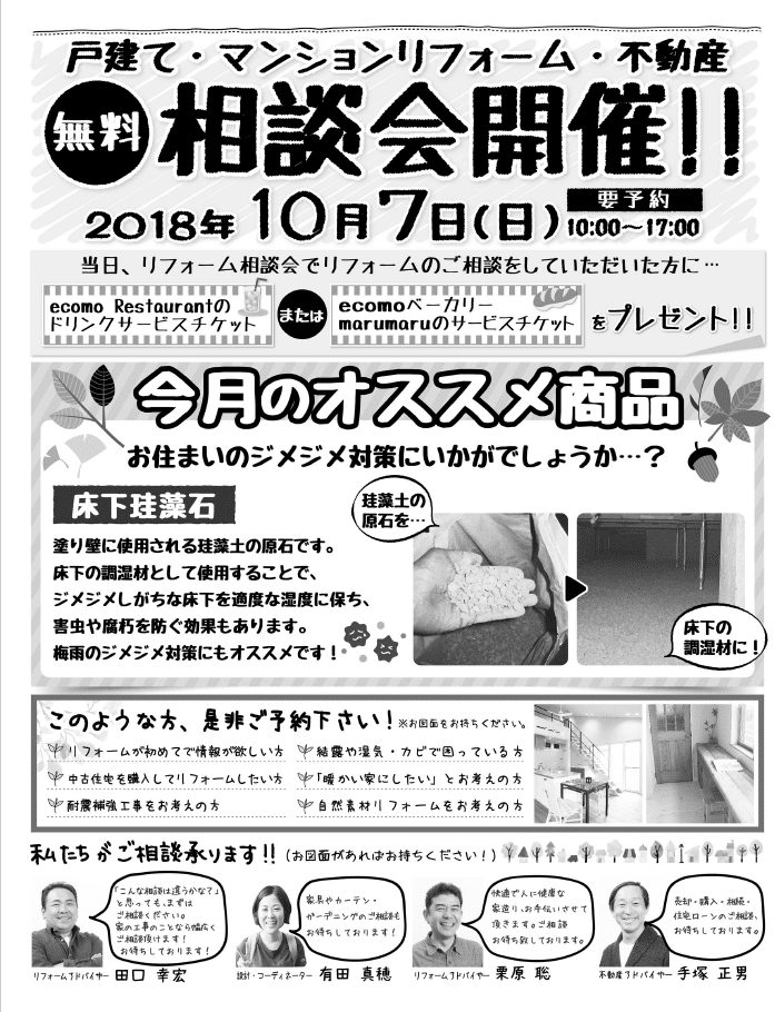 日時 : 10月7日(日) 10時~17時 (要予約)