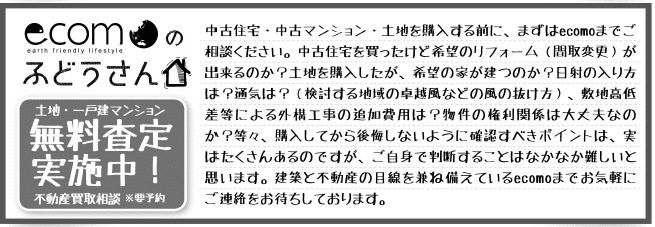 ecomoでは不動産事業もしておりますので、現在住んでいる家の売却や、相続のご相談、土地を購入して新築を建てる、