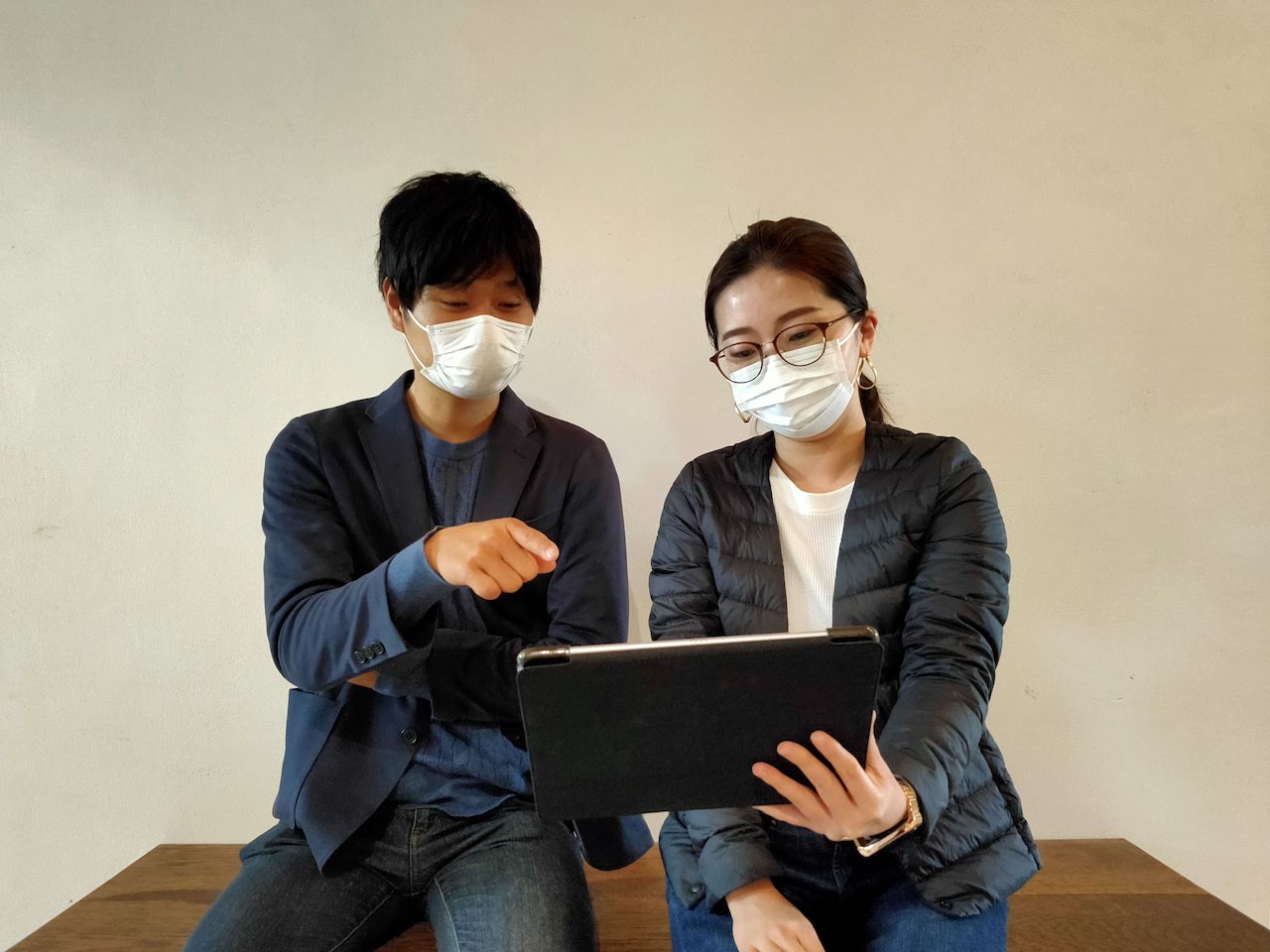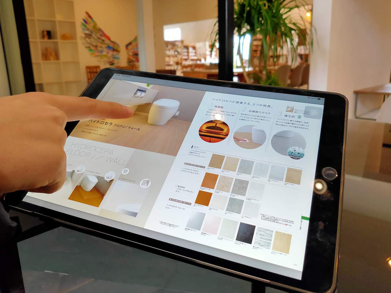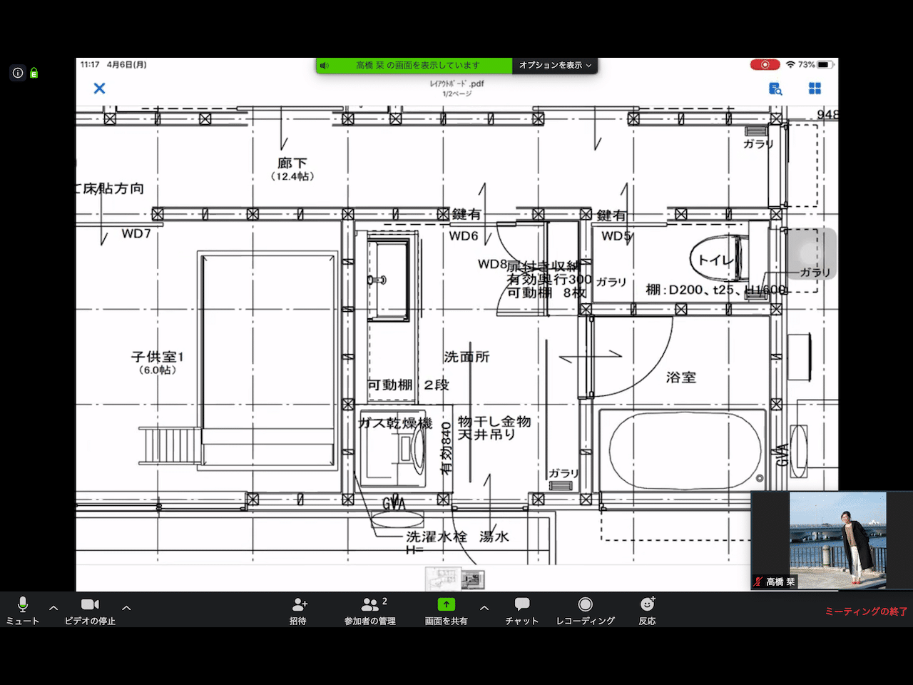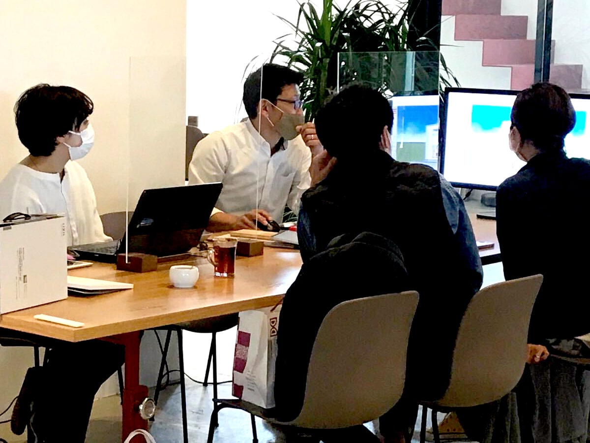 印刷した図面を一緒に見る形式ですと、どうしても距離が近くなりがちです。