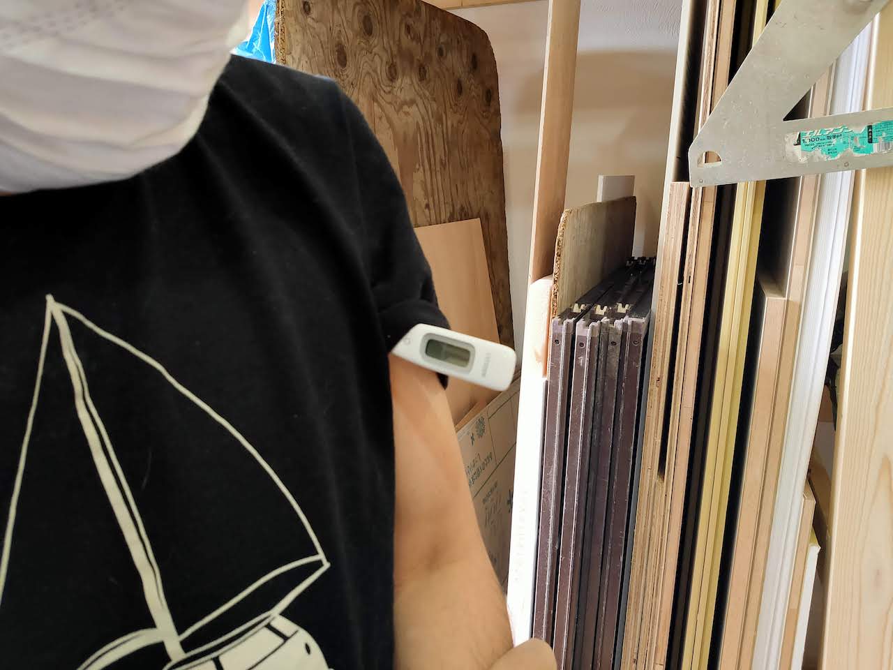 職人に対しての新型コロナウィルス感染予防策として、職人の毎日マスク着用、検温の徹底、窓を開けての施工、朝、昼のアルコール消毒を徹底しております。