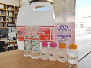 アルコール消毒液を携帯して、こまめに消毒を実施。