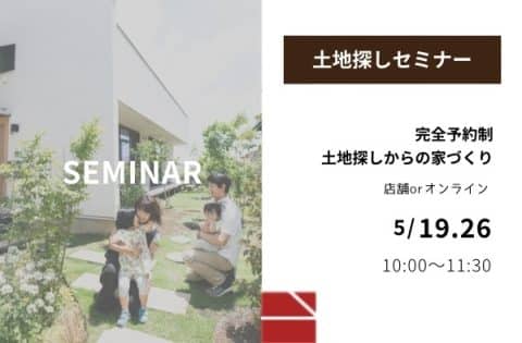 「設計士が話す土地探しセミナー」 日程:5/19.26 時間:10:00~11:30 場所:藤沢本店(キッズス … 続きを読む <予約制>5月土地探しセミナー