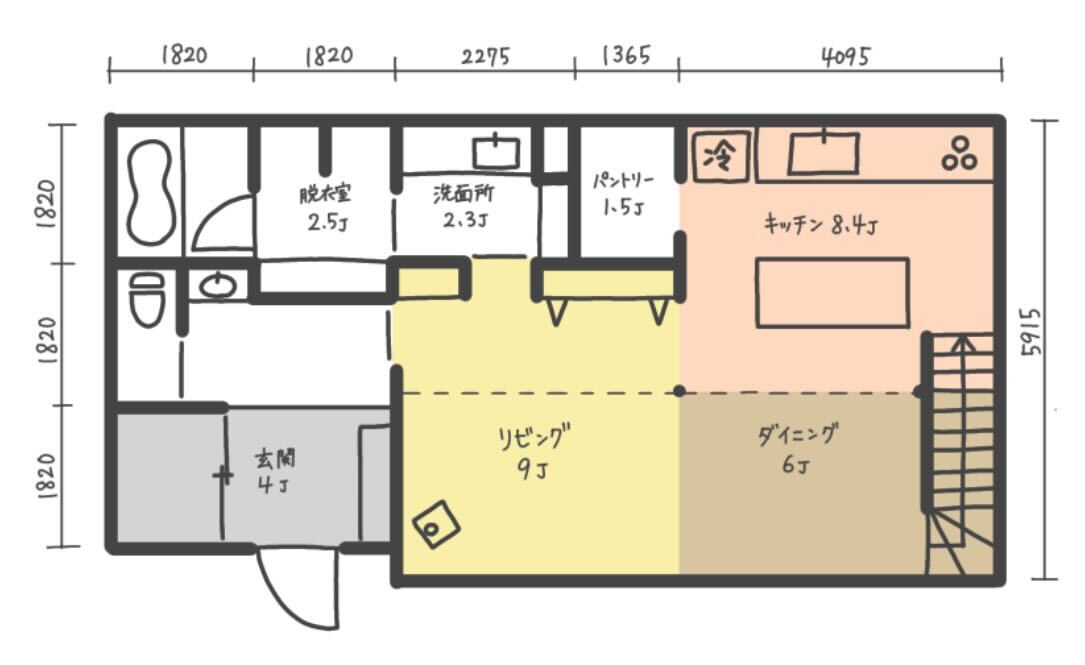 1階LDKで居室はコンパクトに共用部分は大きく。