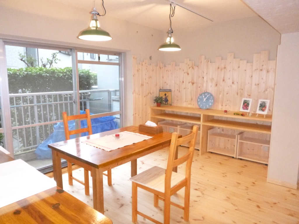 お客様お持ちのパイン材テーブルやカウンターを生かすため、
