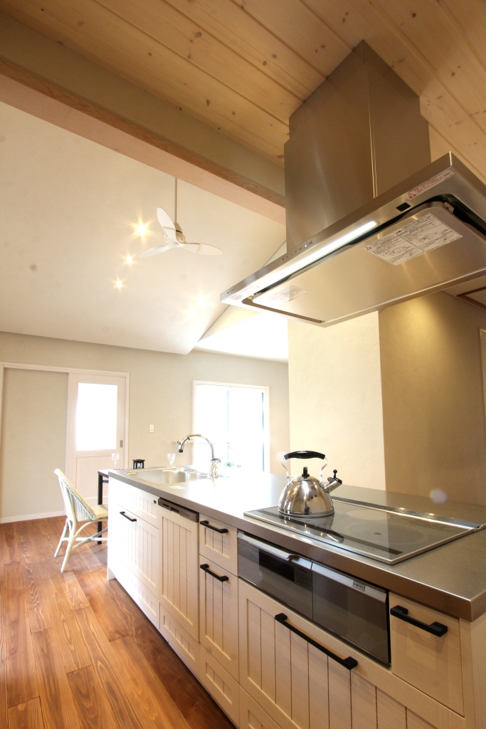 もともと勾配天井だったお部屋を大改造!キッチンを中央に据え広いLDKに。ロフトも造っちゃいました。