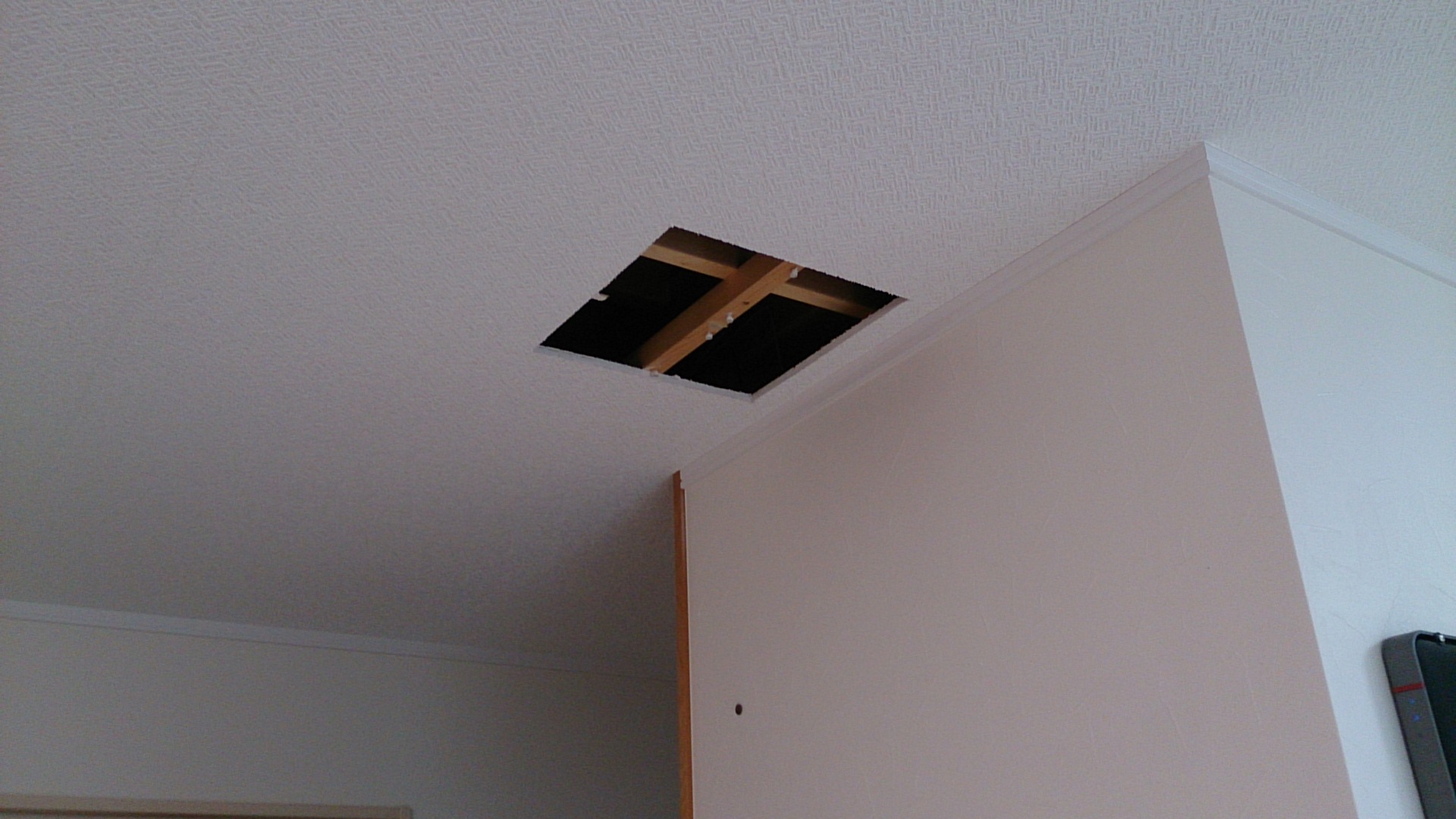 天井裏の構造が知りたくて、確認用の穴を開けさせてもらいました。