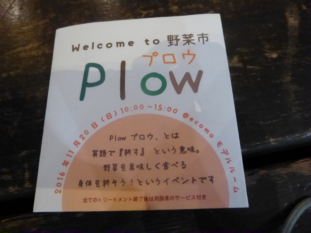 モデルルームではPlow(耕す)というイベントもやっており、マッサージやオリジナルブレンド茶の販売など体を健康に「耕す」企画となっています!