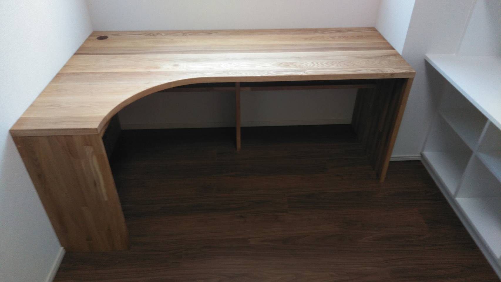 幅広のタモはぎ材で作ったご主人様専用のデスクです。