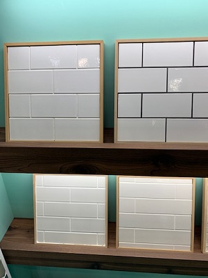 タイルのメーカーさんのブースではタイルの目地がホワイトとグレーの違いが