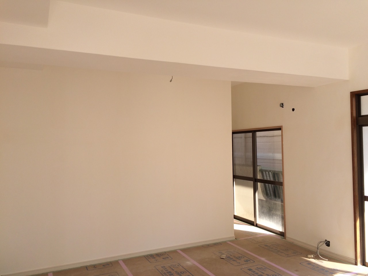 写真では分かり辛いと思いますが、今回の左官材料は国産の漆喰材です。