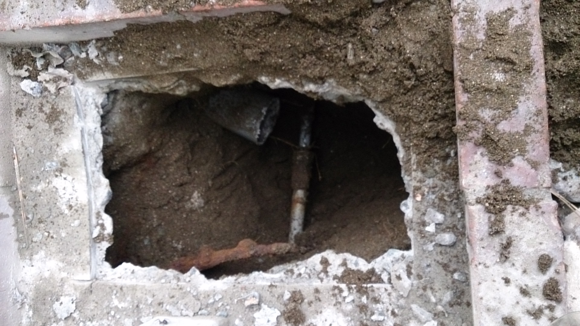 ほぼ間違いないとのことで、その箇所(外水栓の下)を掘ってみたところ、