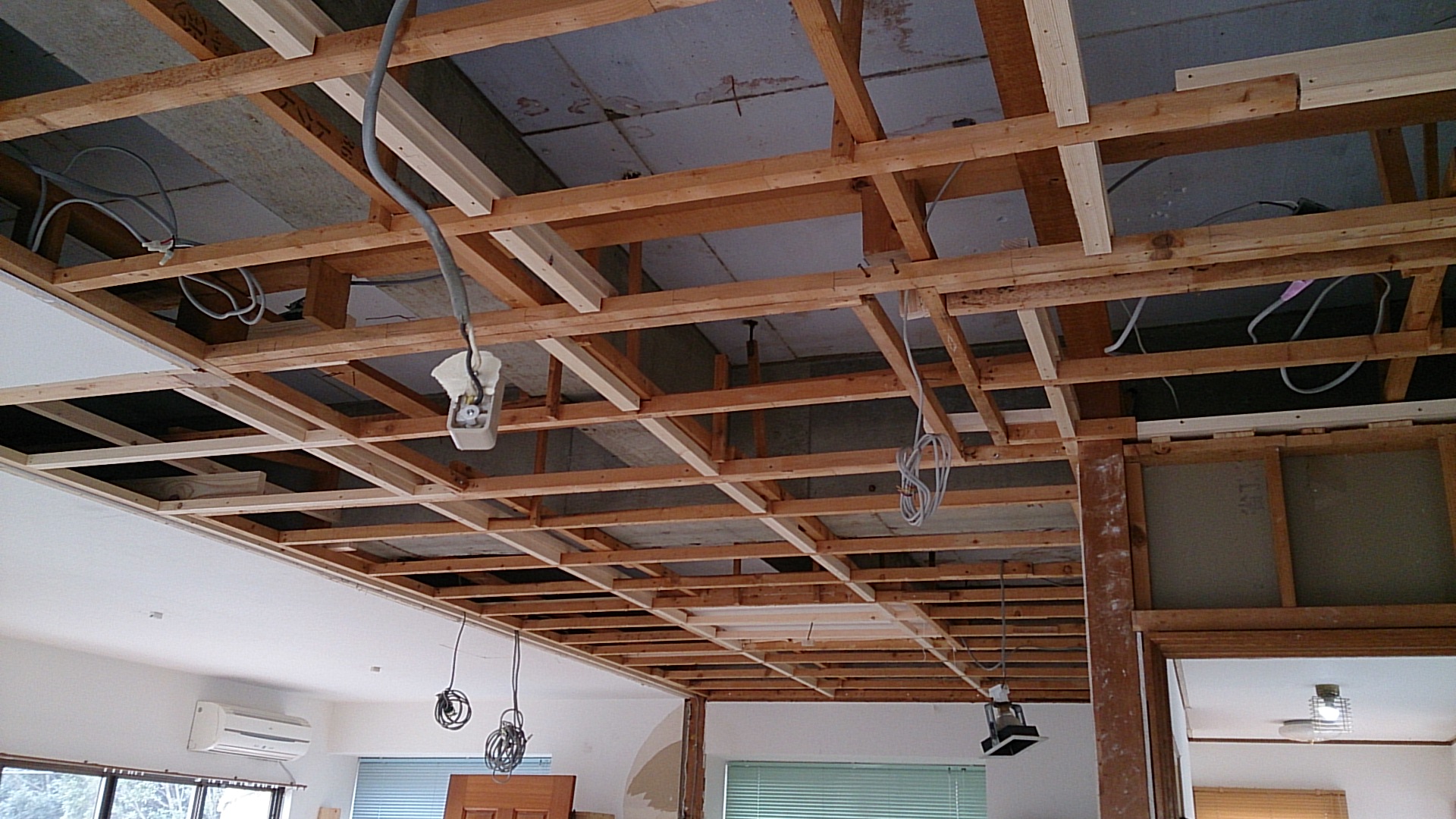 天井の下地が、既存の部分と補修の部分と分かり易かったので撮影してみました。