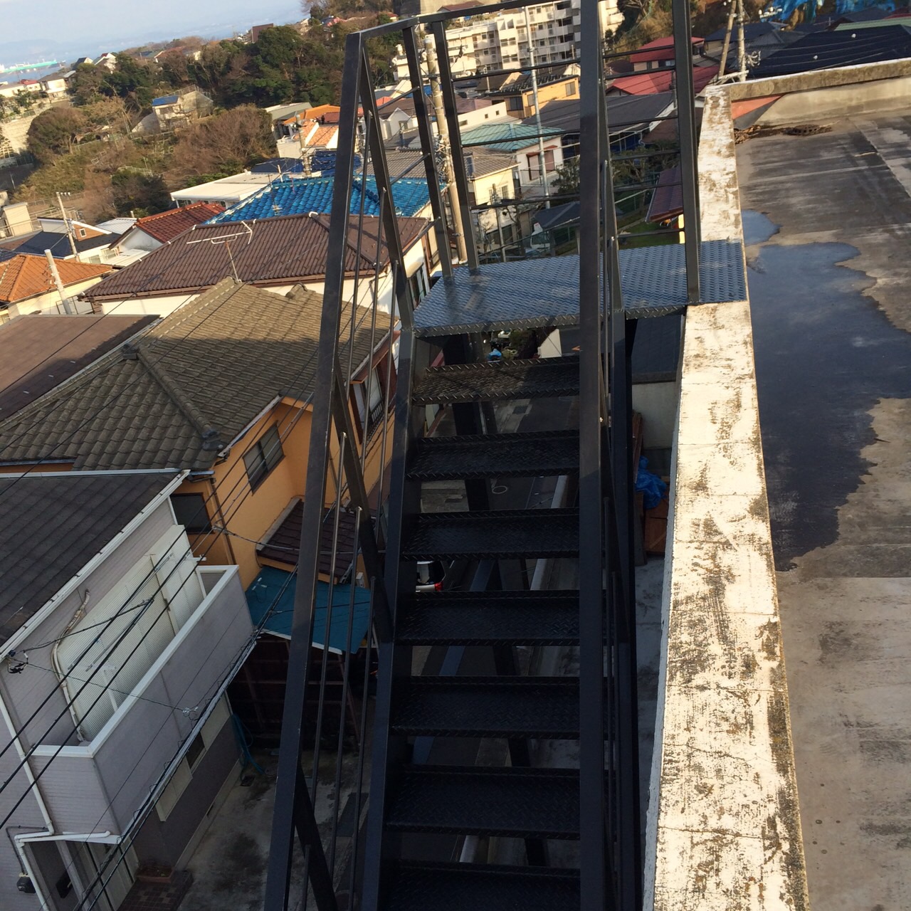 横須賀のとても眺めの良い住宅の屋上に上がる鉄骨階段を設置しました。