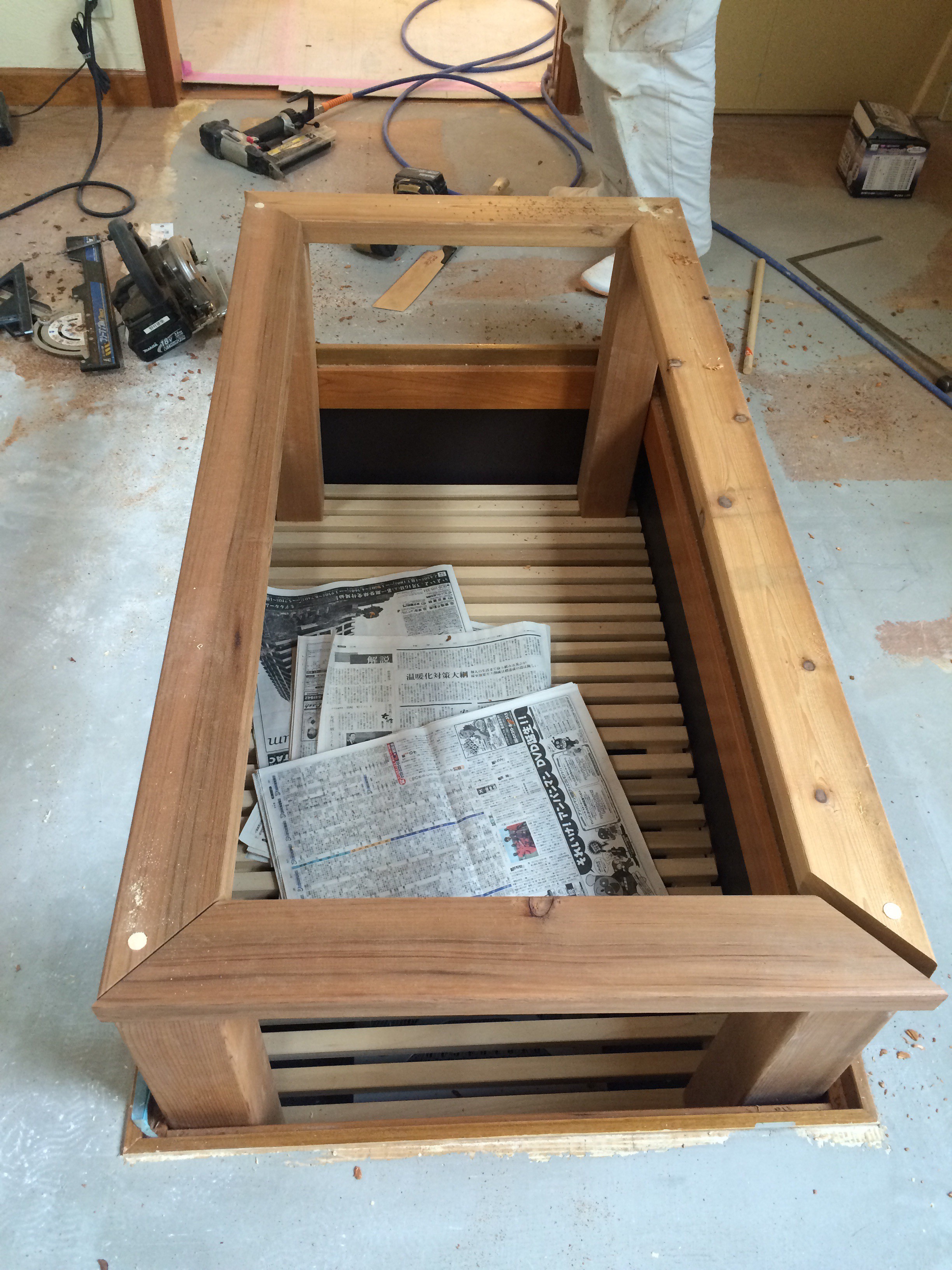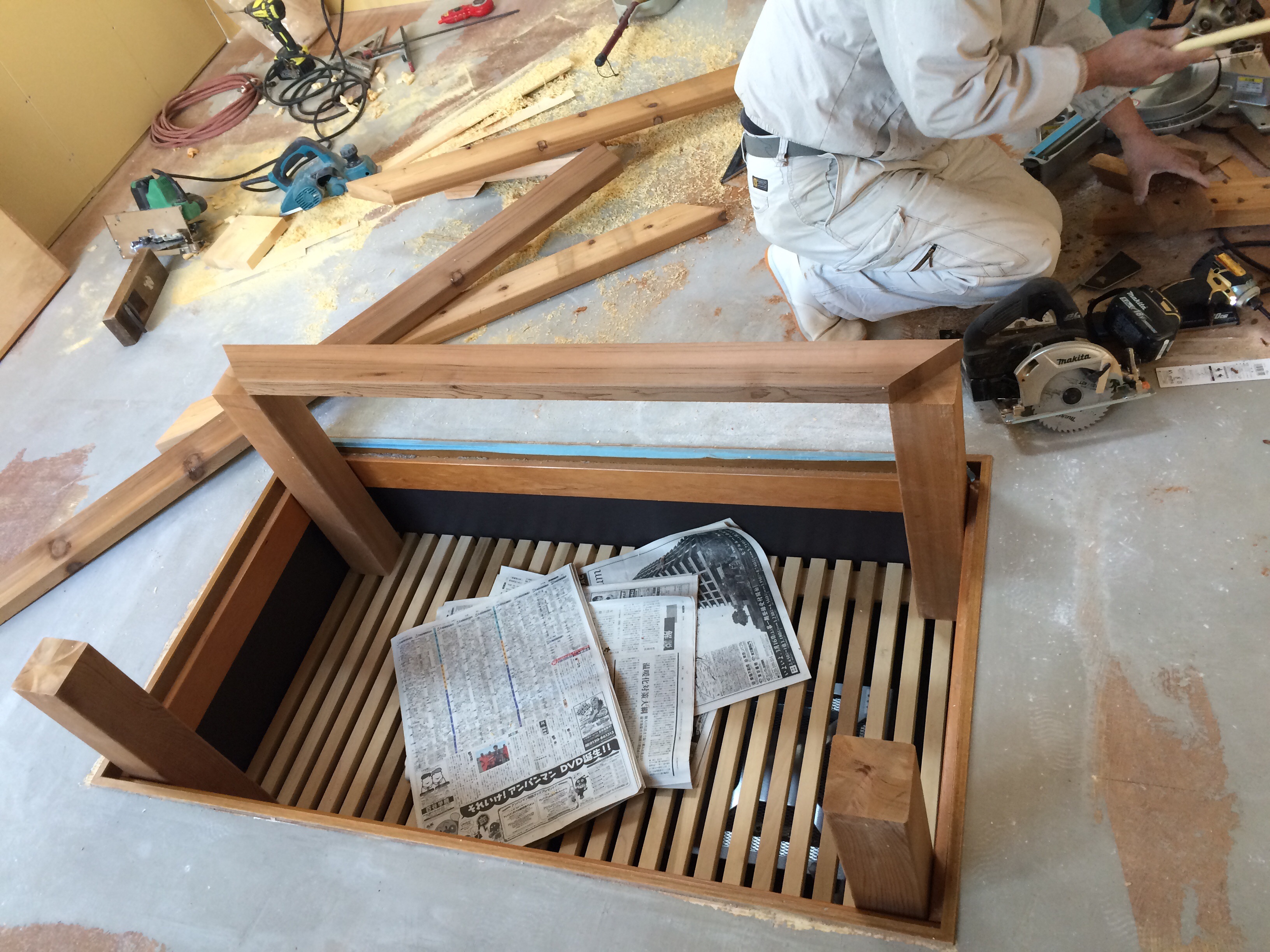 親分登場、、、 監督の鈴木です。 中古購入リフォームをさせていただいております。 大工最終日の今日は親方登場!! ecomoでも重鎮の大工さんで一見怖い感じですが、いかにも大工です?!と言わんばかりのオーラ!が根は優しい「頼れる親びん、、、?」、今日は物件購入時に行方不明となっていた掘り炬燵のテーブル脚を造作してくれました〜。 ご機嫌だったのか、お昼に特上カルビランチを振舞ってくれました? Facebook で共有するにはクリックしてください (新しいウィンドウで開きます)クリックして Twitter で共有 (新しいウィンドウで開きます)