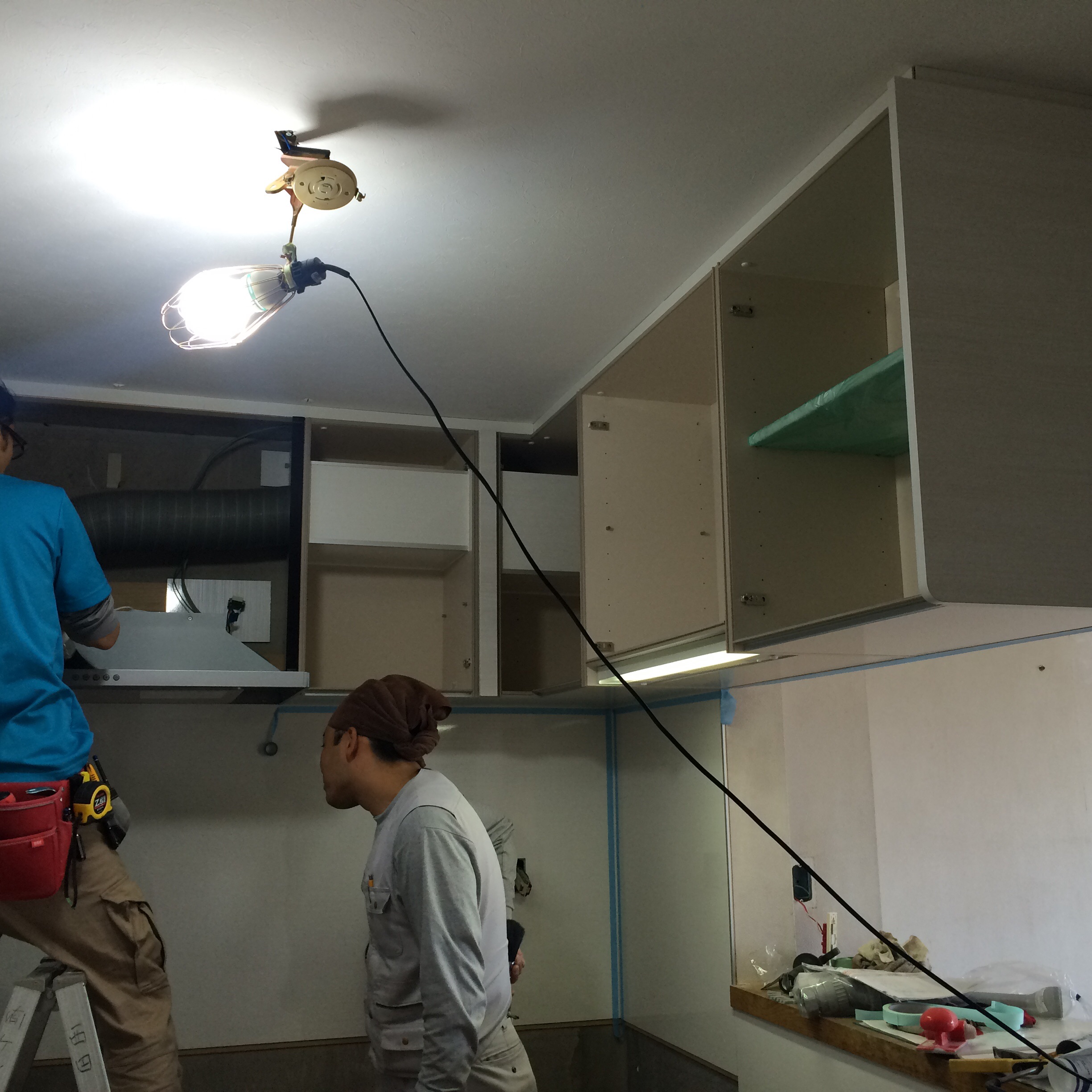 茅ヶ崎のリフォーム現場に、メーカーさんのキッチン施工部隊が登場です。