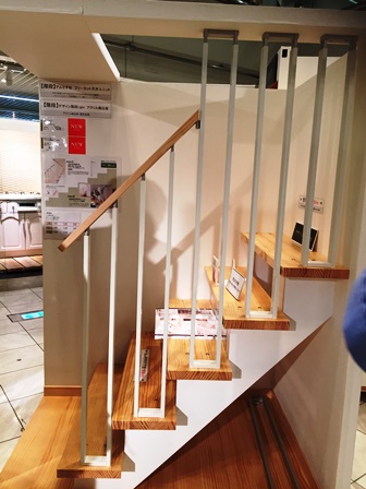 こちらの階段も新製品で、鉄のフレームに集成材の踏み板の階段です。