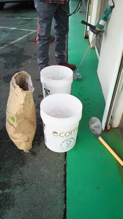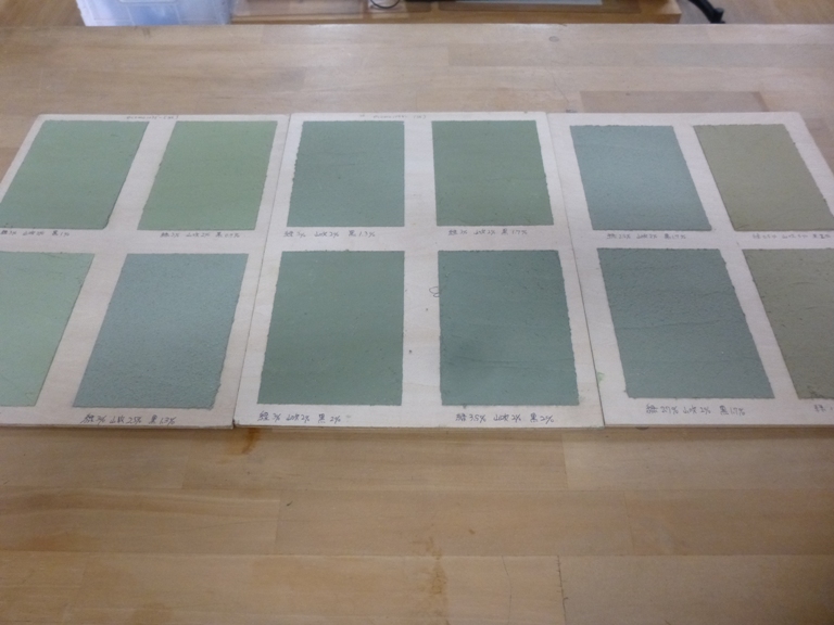 過去に塗った珪藻土の補修用にオリーブグリーンの珪藻土を調色中です。