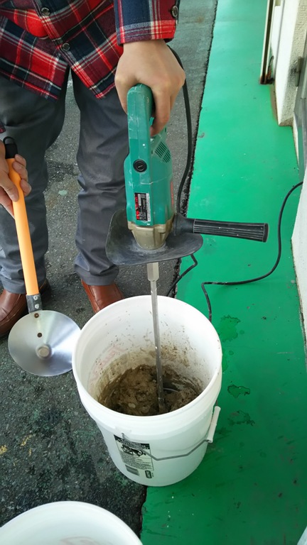 ecomoで使用している珪藻土に色粉を入れてオリーブグリーンを目指します。