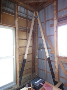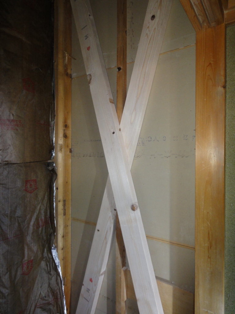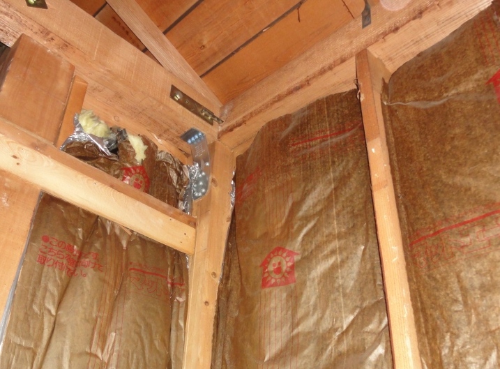2階もそうでしたが、今回は断熱材の入れ替えまで行う工事の為、耐震補強箇所以外の壁も全て解体しています。