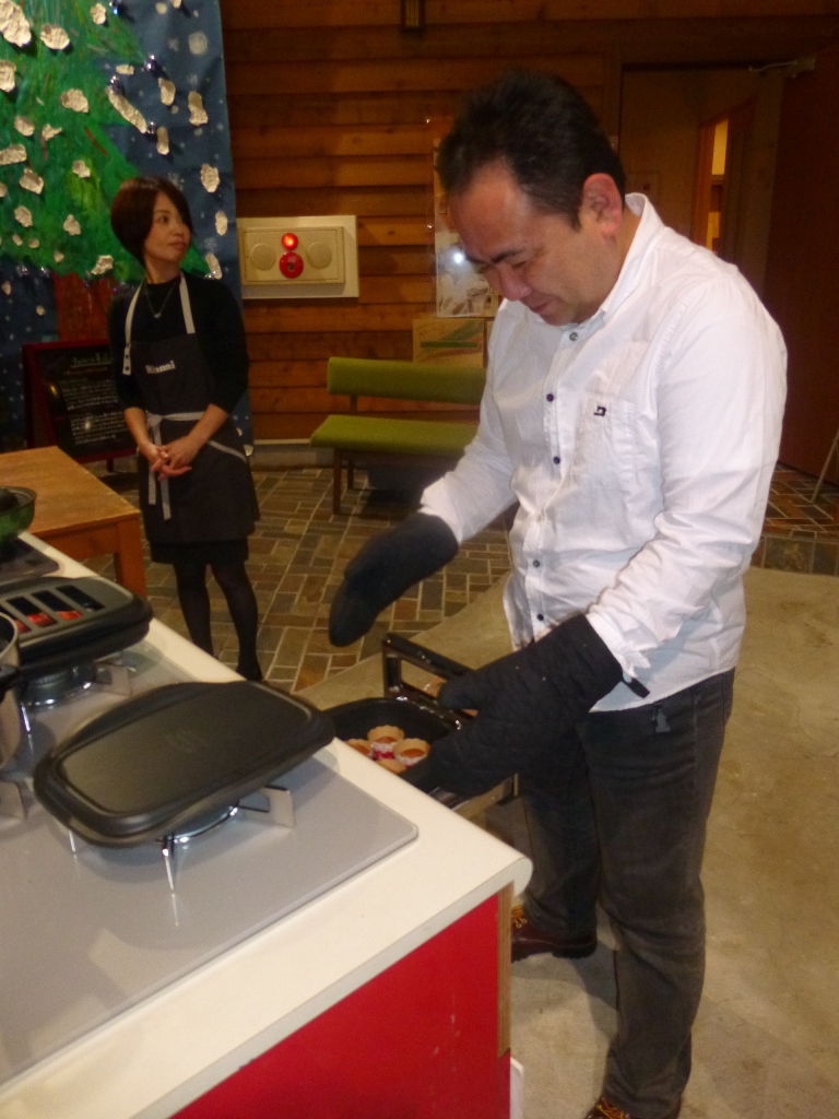 本日はリンナイさんが店内でガスコンロの実演をしてくださっています。