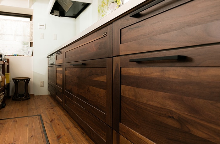 奥様 キッチンにはこだわりたいとお話ししたら、私のイメージに合うようなフローリングや床の色のサンプルをいろいろと作ってもらって検討できたのが良かったです。私たちの手持ちの家具や両親の家具ともぴったりあって、満足しています。
