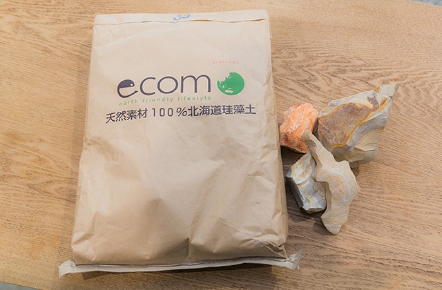 ecomoでは日本でも一番調湿性が高いと言われる北海道稚内地方で採掘されたオリジナル珪藻土を使っています。