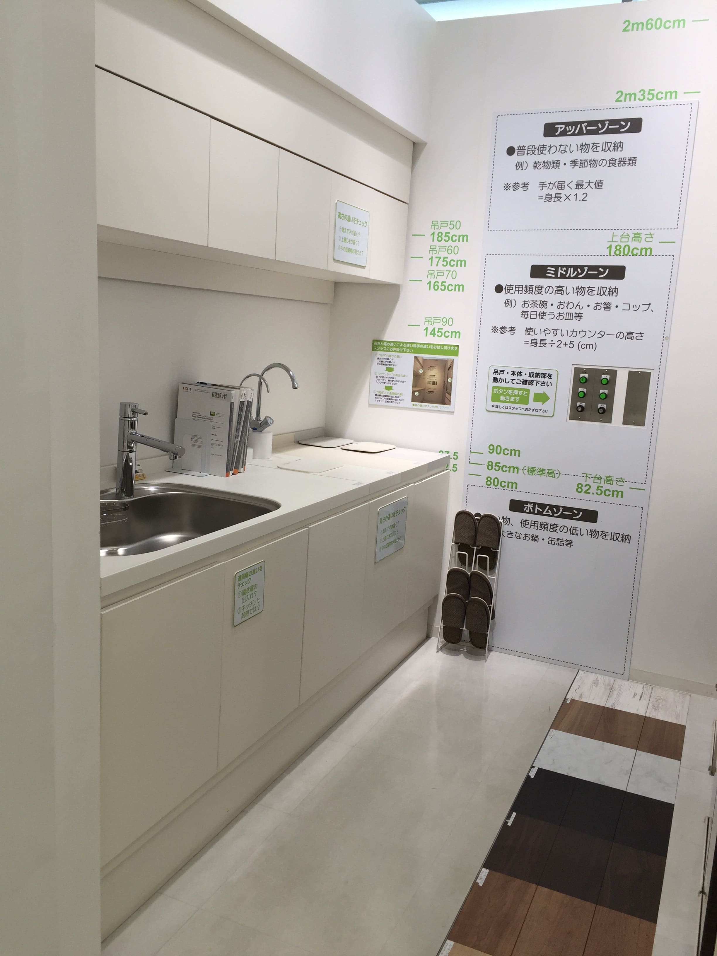 導線上や間取り的に2m55cmのキッチンや2m40cmのキッチン以外にもこのようなタイプの配置もご提案しております。